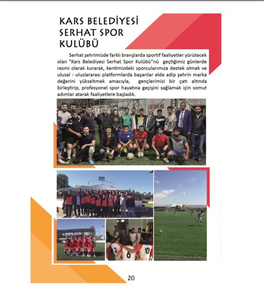 -Serhat şehrimizde farklı branşlarda sportif faaliyetler yürütecek olan "Kars Belediyesi Serhat Spor Kulübü"nü geçtiğimiz günlerde resmi olarak kurarak, kentimizdeki sporcularımıza destek olmak ve ulusal - uluslararası platformlarda başarılar elde adip şehrin marka değerini yükseltmek amacıyla, gençlerimizi bir çatı altında birleştirip, profesyonel spor hayatına geçişini sağlamak için çalışmalara başlamış bulunmaktayız.