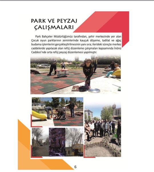 -Park Bahçeler Müdürlüğümüz tarafından, şehir merkezinde yer alan Çocuk oyun parklarının zeminlerinde kauçuk döşeme, tadilat ve ağaç budama işlemlerini gerçekleştirmenin yanı sıra; ilerideki süreçte merkez caddelerde yapılacak olan refüj düzenleme çalışmaları kapsamında İnönü Caddesi’nde orta refüj peyzaj düzenlemesi yapılmıştır.