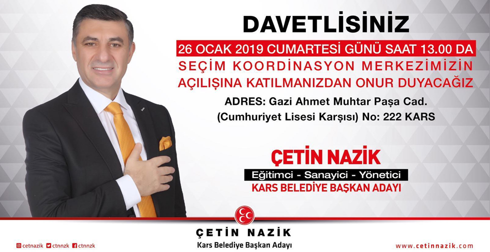 MHP Kars Belediye Başkan Adayının Çetin Nazik olarak açıklanmasının ardından Nazik, Kars da seçim çalışmalarını sürdürüyor.