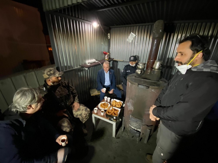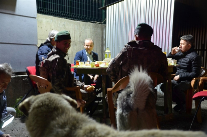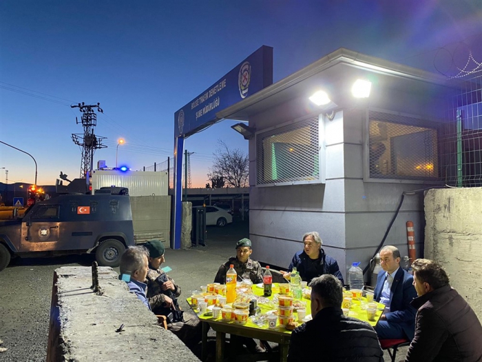 Kars İl Emniyet Müdürü Yavuz Sağdıç, şehrin giriş çıkışlarındaki Uygulama Noktalarında görevli personel ile birlikte iftar yaparak çay içti.