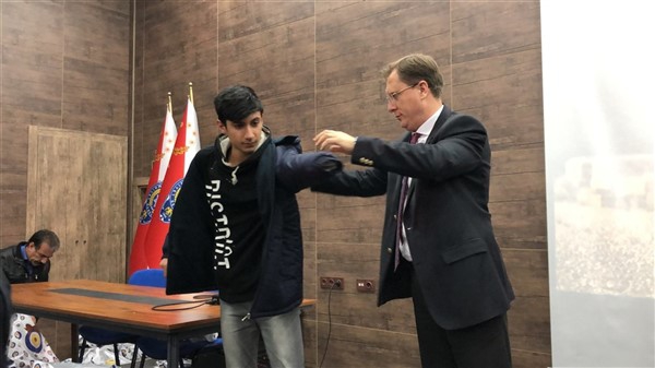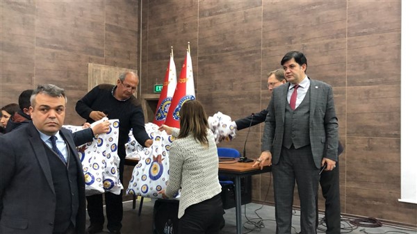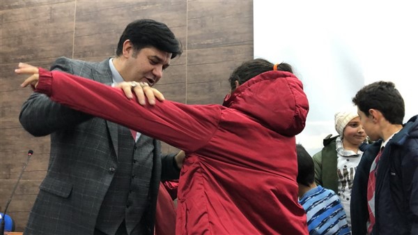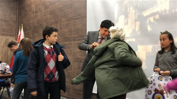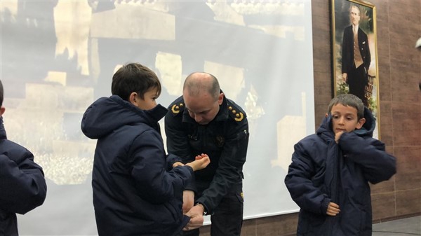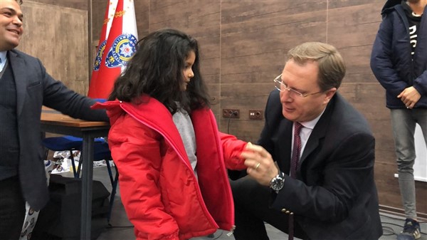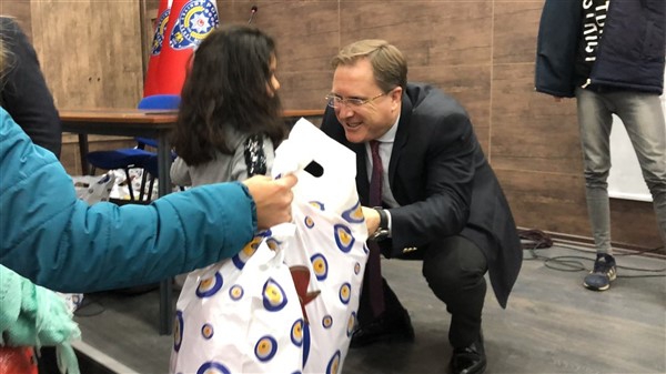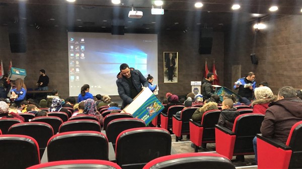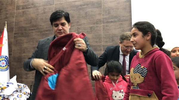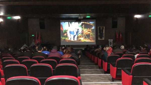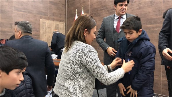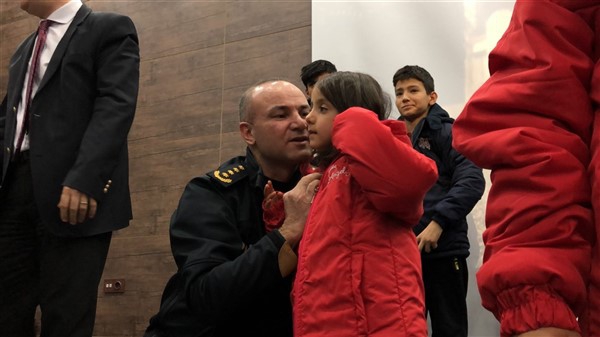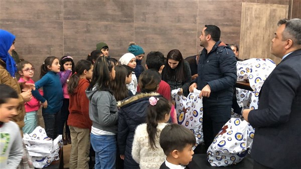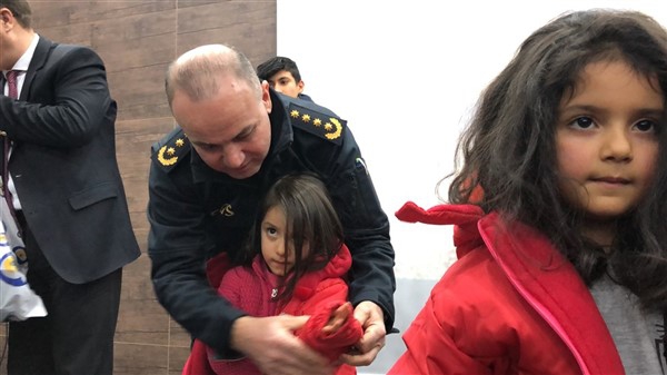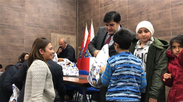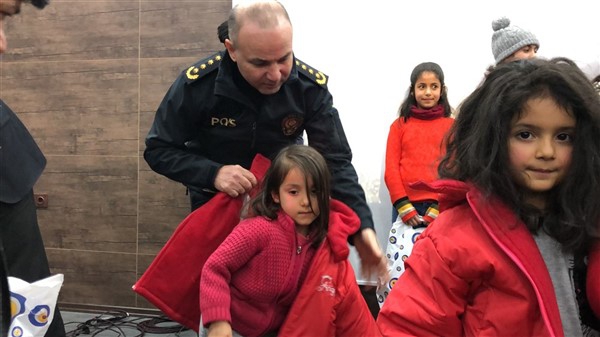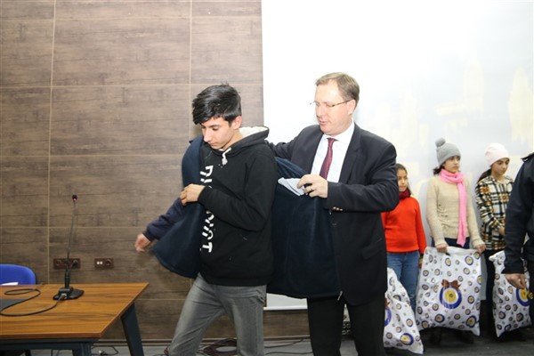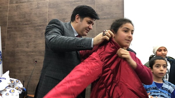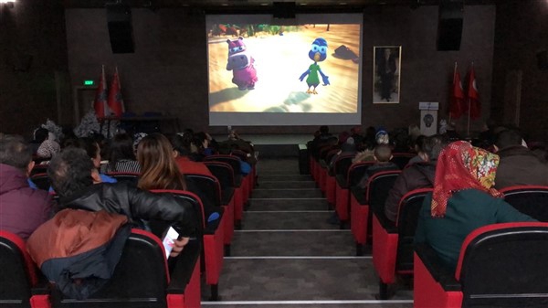 Daha sonra 1 saatlik bir çocuk filmi izlettirildi. Filmden sonra da Emniyet Müdürü Yavuz Sağdıç, eşi ve çocuklarıyla mont dağıtımı yaptı. Çocuklara montları kendi eleriyle giydiren Sağdıç, sohbet de ederek mutluluklarını paylaştı.