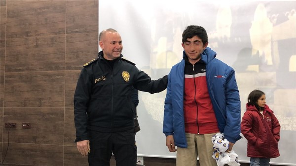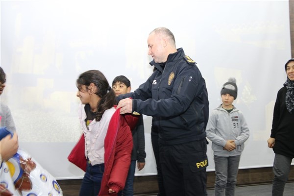 Kars İl Emniyet Müdürlüğü Çocuk Şube Müdürlüğü görevlilerince, çocukları ısıtan bir etkinlik düzenlendi. Çocuklara önce eğitici film izlettirildi ardından da mont dağıtımı yapıldı.