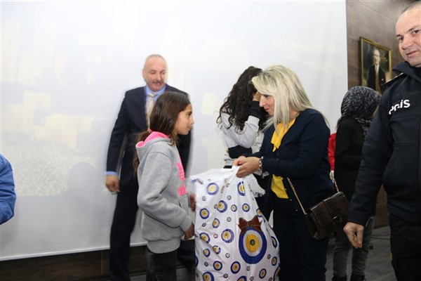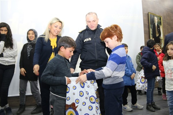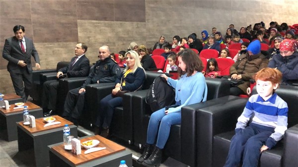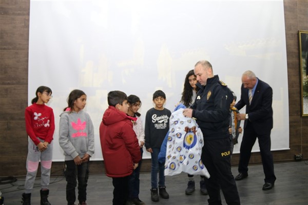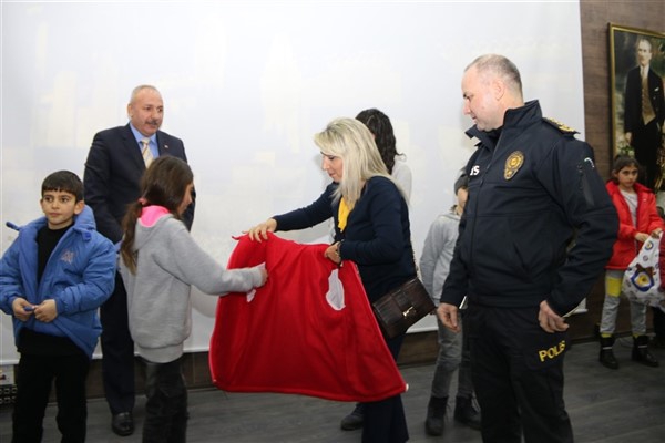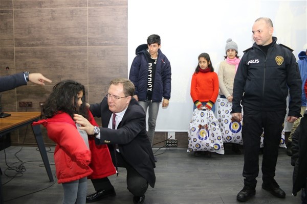 Emniyet Müdürü Yavuz Sağdıç, eşi ve çocuklarıyla birlikte geldiği salonda çocuklara, “Sizleri bugün burada ağırlamaktan son derece mutlu olduk. Sizler bizim geleceğimizsiniz. Sizlerin huzuru ve geleceği için çalışıyoruz. Sizler mutlu olun yeter” dedi.
