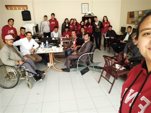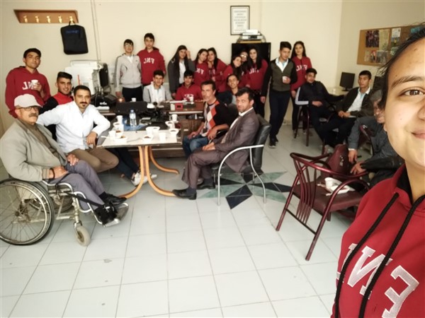 Engelli yaşamı hakkında öğrencileri bilgilendirmek ve toplumda farkındalığın artırılarak devam etmesi için üstümüze düşeni öğrenmek ve öğretmek için Dolunay Derneğini ziyaret eden öğrenciler engellilerin farkında olduklarını ve olmaya devam edeceklerini söylediler.
