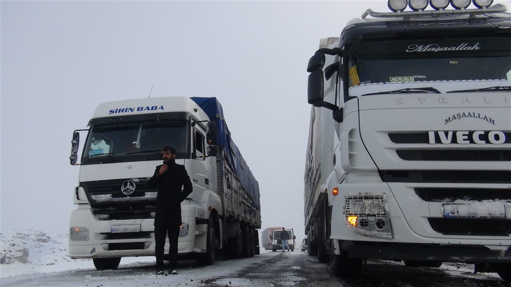 Tır sürücüsü Baytar Uluç, hayvan dolu tır ile yola çıktıklarını ve yolda kaldıklarını anlatarak, "Sabah 7'den beri yoldayız. Greyder gelip burada çalışma yapıyor ama buraya tuzlama yapılması lazım. Burada tuzlama yapılırsa daha rahat çıkarız. Kendi imkanlarımızla çıkmaya çalışıyoruz, mecburen de yolu kapatıyoruz. Bizde toprak, taş atarak çıkmaya çalışıyoruz." diye konuştu.