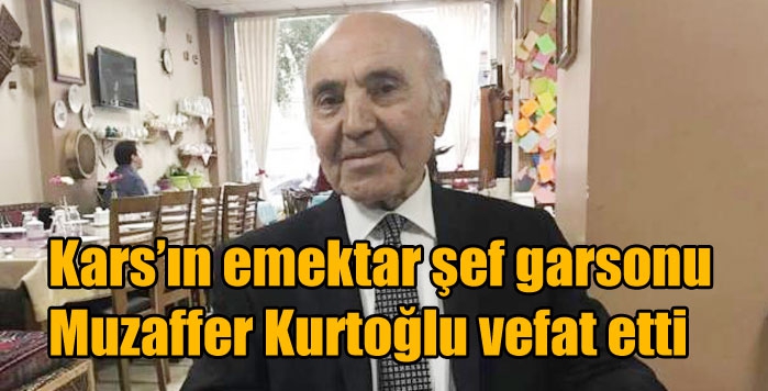 Kars’ın Emektar Şef Garsonlarından Kafkas Üniversitesi Konuk Evinden emekli olan ve kardeşi merhum Vali Makam Şoförü İsfendiyar (Eko) Kurtoğlu ile birlikte ikamet ettiği Vali konağında uzun yıllar kentte gelen bütün devlet erkanına işinin ehli olarak hizmet ettiği için “Doktor” lakabı takılan şehrin nezih ve kibar insanı aynı zamanda Kars Valiliği İl İdare Kurulu Müdürü Haydar Ali Altıngünlü’nün de kayın pederi Muzaffer Kurtoğlu, yakalandığı mide kanseri hastalığı için tedavi gördüğü Kars Kafkas Üniversitesi Eğitim Araştırma Hastanesinde Vefat Etti.