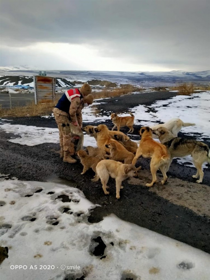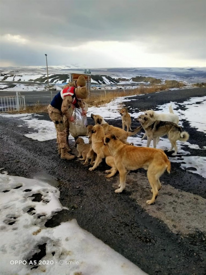 Kars İl Jandarma Komutanlığı sorumluluk bölgesindeki Susuz ilçesi Çamçavuş Köyü’nde birçok sokak hayvanının aç ve zor durumda olduğunun tespit edilmesi üzerine 14 Ocak 2021 günü bahse konu sokak hayvanlarına yiyecek verilmiş, beslenmelerine müteakip Susuz Belediyesi hayvan barınağına götürülmeleri sağlandı.