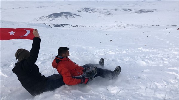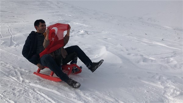 Gençler kayak, çocuklarda kızakla bu keyifli anları yaşayınca Elma Dağı’nın kayak için müsait olduğu tespit edilince bu kış sezonunda işe koyuldular. Güzergahları ayarladıktan sonra da her gün bu dağa tırmanarak kayak kaydılar.