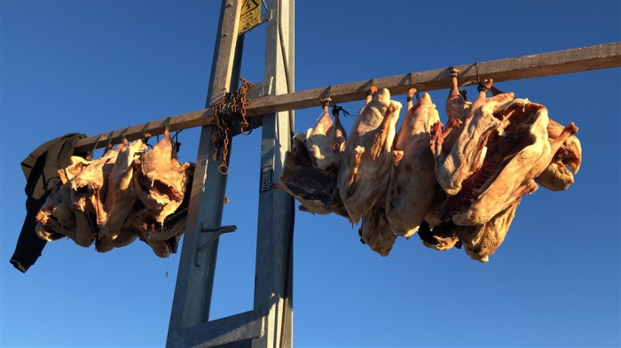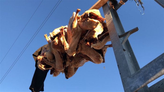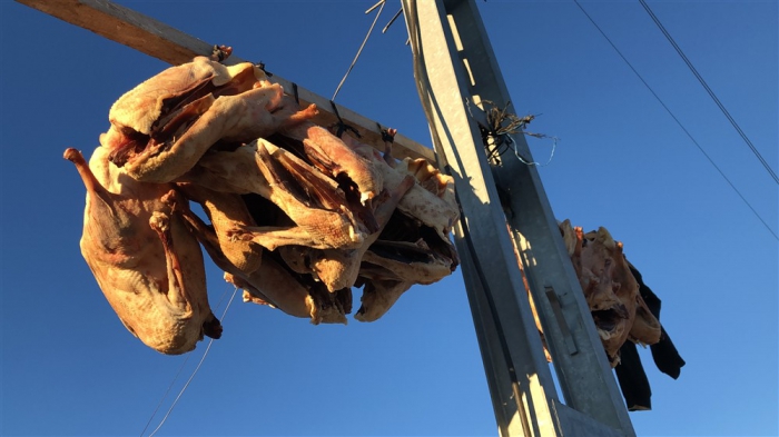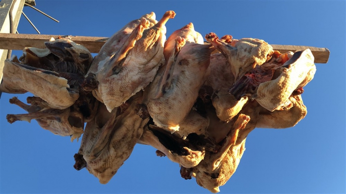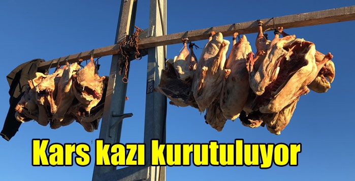 Kars’ın meşhur kazı kesimlerin ardından kurutulmaya başladı. Köylerde bina saçaklarının altına veya elektrik ve telefon direklerine asılarak kurutulan kaz etleri, Ocak ayından itibaren sofralardaki yerini alacak.