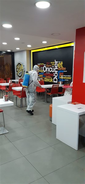 Kars Lokantacılar Odana bağlı lokantalar, restaruantlar, pide-lahmacun salonları, fast-food pastaneler, tatlıcılar, börekçiler, kafe, kafaterya salonları, kasaplar, fırınlar ve diğer tüm işletmeler; koronavirüse karşı titizlikle dezenfekte ediliyor.