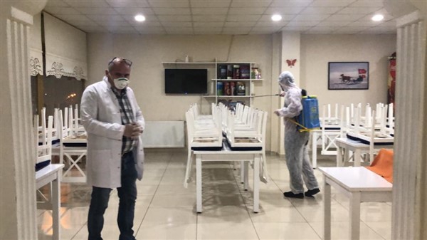 Kars Lokantacılar Odasının dezenfekte çalışmaları hummalı şekilde sürüyor