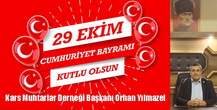 Kars Muhtarlar Derneği Başkanı merkez Dikme Köyü Muhtarı Orhan Yılmazel, Cumhuriyetimizin kuruluşunun 100. Yılı nedeniyle kutlama mesajı yayınladı.