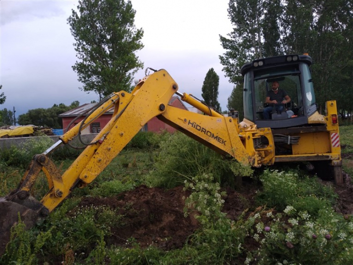Kars İl Özel İdaresi Akyaka Şantiyesi ekipleri, iş makinesiyle birlikte sel afetinin yaşandığı Karahan ve Üçpınar köylerinde dere ıslah çalışması yaptı.