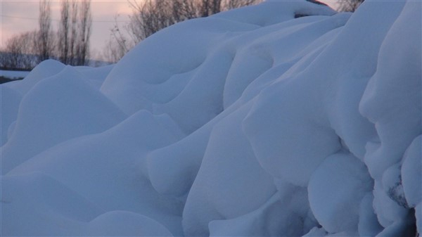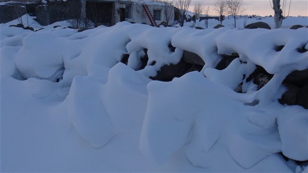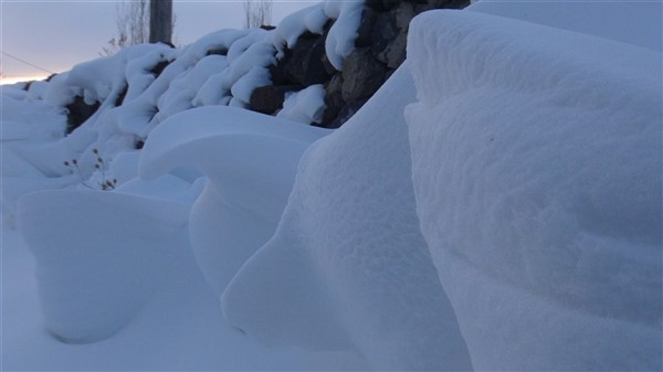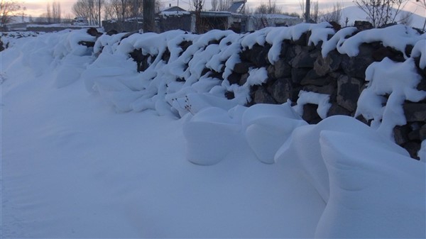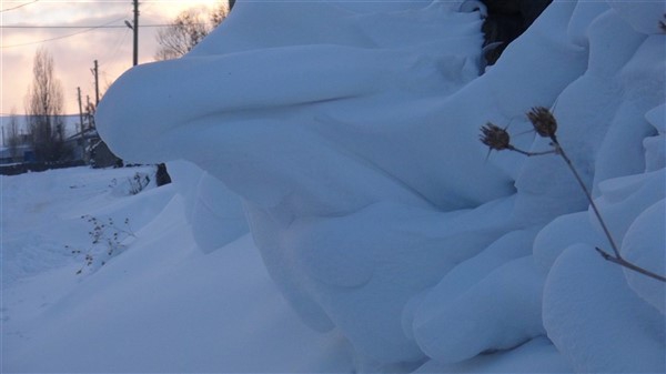 Tipi nedeniyle köy içi yol kenarlarında ilginç kardan şekiller oluştu. Karda uyuyan koyunlara benzeyen şekiller dikkat çekti.