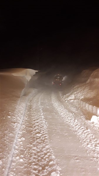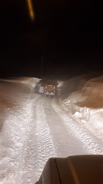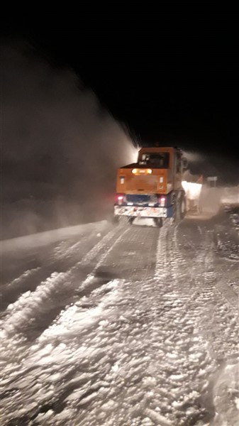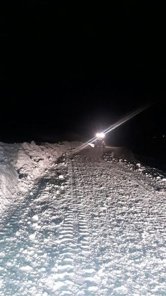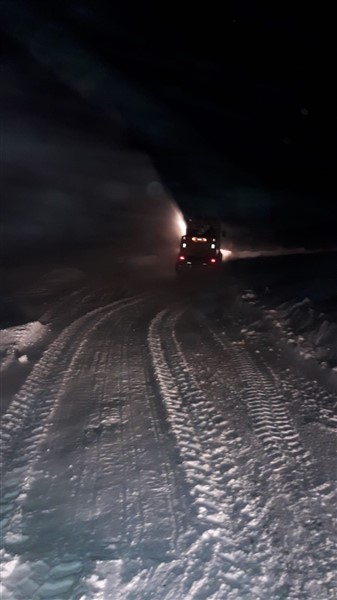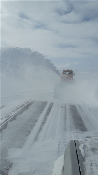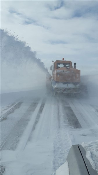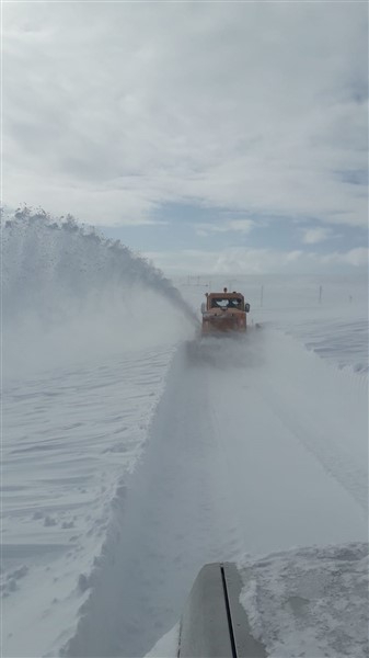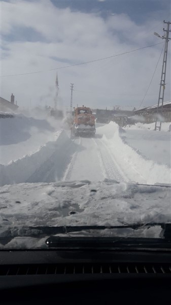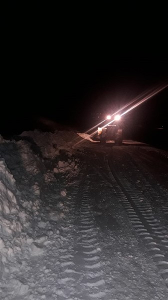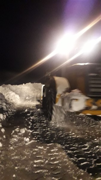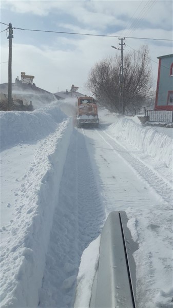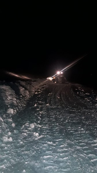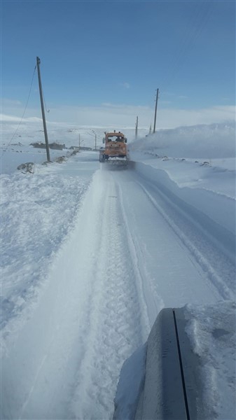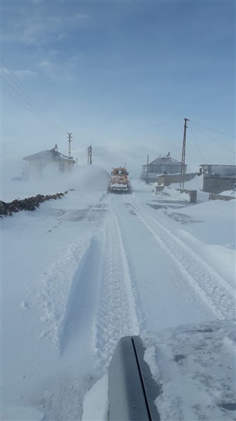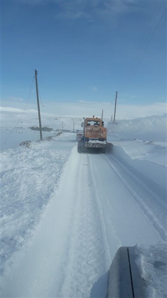 An itibariyle 19 köy yolunun kapalı bulunduğu köy yollarında hummalı çalışma yürüten ekipler rotatif, greyder ve kepçelerle karlı yolları aşıyor.