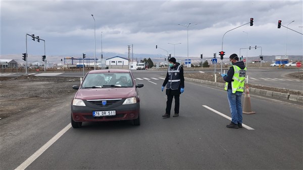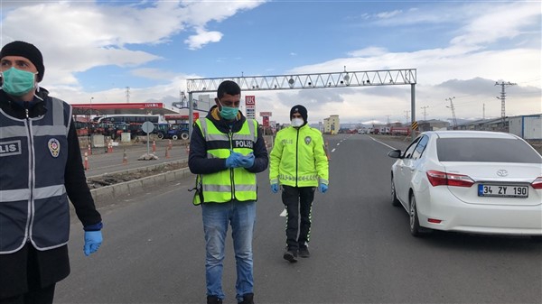 Şehrin giriş çıkış noktalarındaki uygulama alanlarında durdurulan araçlarda sürücü ve vatandaşlara evlerinde kalmaları ve mecbur kalmadıkça sokağa çıkmamaları söyleniyor.