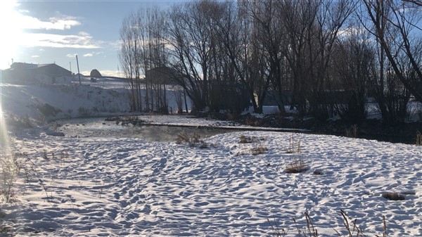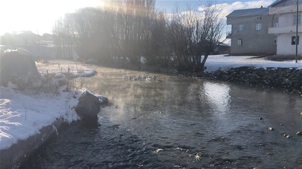 Buz tutan Bayburt Barajı’nın yanı başındaki evde yaşamlarını sürdüren Muhtar Gökmen Lale, köyün buzlu sularında yüzen kazların köye güzellik kattığını söyledi.