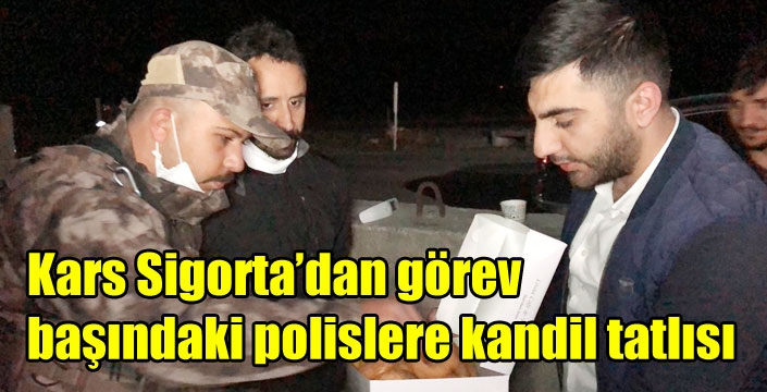 Karslı gençler Ferhat Vargün ve Murat Çapik, mübarek Kadir Gecesi nedeniyle görevi başında olan Emniyet teşkilatına Kars Sigorta adına tatlı ikram etti.