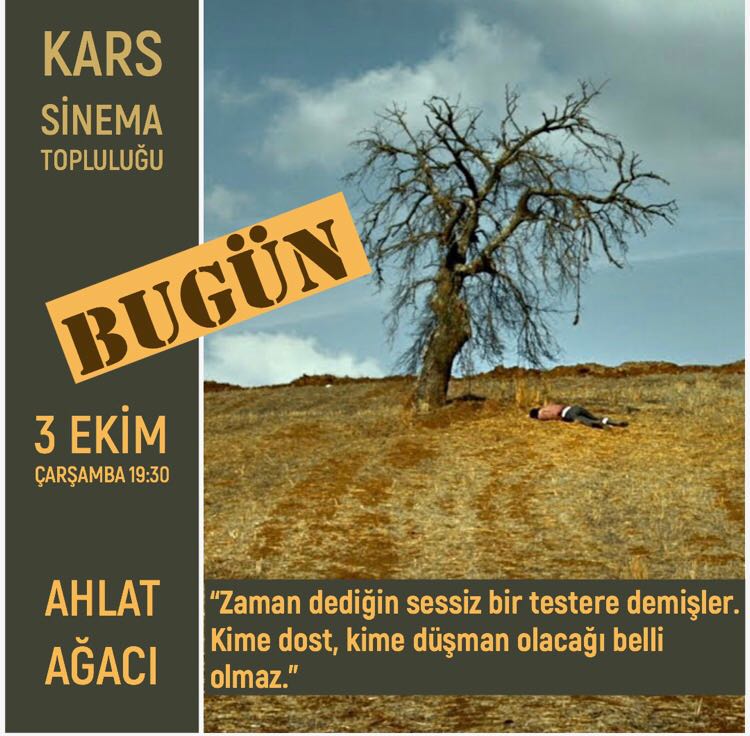 Türkiye’nin Oscar Adayı olan Nuri Bilge Ceylan’ın son filmi “Ahlat Ağacı” bu akşam saat 19:30’da Kars Şehir Sinemasında tek seans gösterimle gösterilecek.