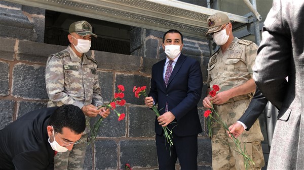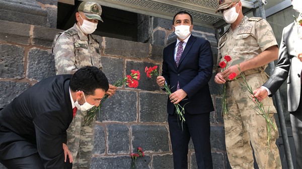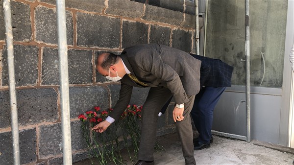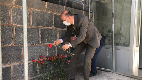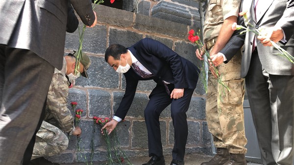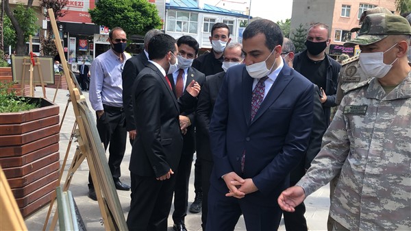 Vali Türker Öksüz, sergiyi gezmesinin ardından, beraberindekilerle birlikte 15 Temmuz 2016 günü halk direnişinin odak noktası olan eski İl Emniyet Müdürlüğü hizmet binasına gelerek karanfil bıraktı.
