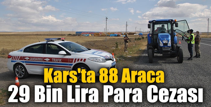 Kars'ta 158 jandarma personelinin katılımıyla gerçekleştirilen trafik denetiminde kural ihlali yapan 88 araca 29 Bin 673 lira para cezası uygulanırken, 18 araç trafikten men edildi.