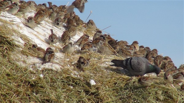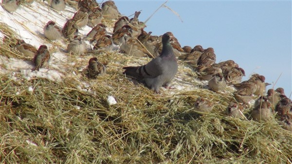 Merkeze bağlı Üçbölük köyünde muhtar Ziyettin Öncel, büyükbaş hayvanlar için yazdan hazırladığı ot yığınlarını kış mevsiminde yem bulmakta zorlanan güvercin ve sığırcıkların kullanımına açtı.