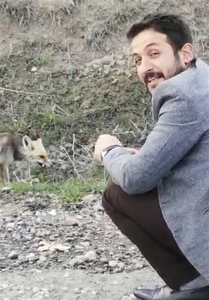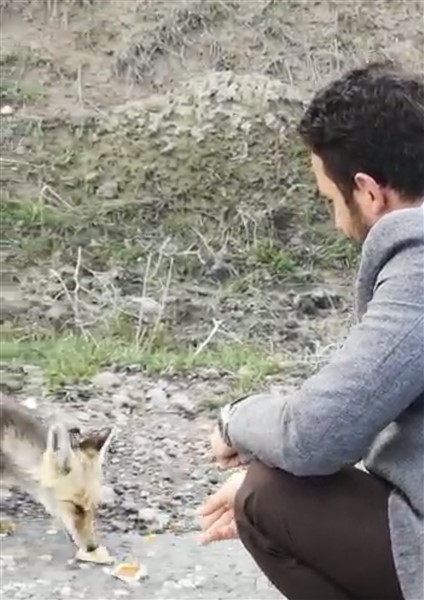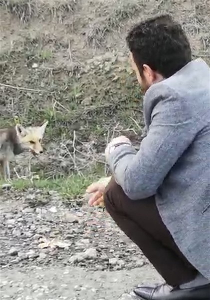 Kars'ın Kağızman ilcesine Bağlı Çayarası köyünde ikamet eden Mehmet Sena Aras ile Cengiz Aras özel araçlarıyla Erzurum'a hastaneye giderken köy çıkışında gördükleri aç tilkinin karnını ekmekle doyurdular.