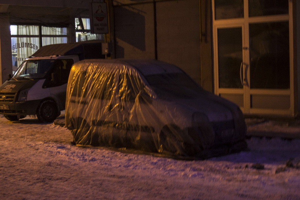 Kars’ta geceleri etkili olan dondurucu soğuklar günlük yaşamı olumsuz etkilerken araç sahipleri ise arabalarını soğuktan korumak için akla karayı seçiyorlar.