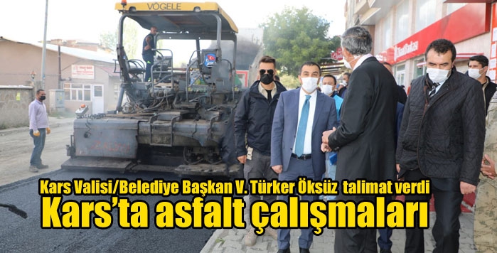 Kars Valisi/Belediye Başkan V. Türker Öksüz de Kazımpaşa Caddesi'nin devamındaki bölümde sürmekte olan asfalt çalışmalarını inceleyerek yetkililerden bilgi aldı ve en kısa sürede bitirilerek trafiğe açılması talimatı verdi.