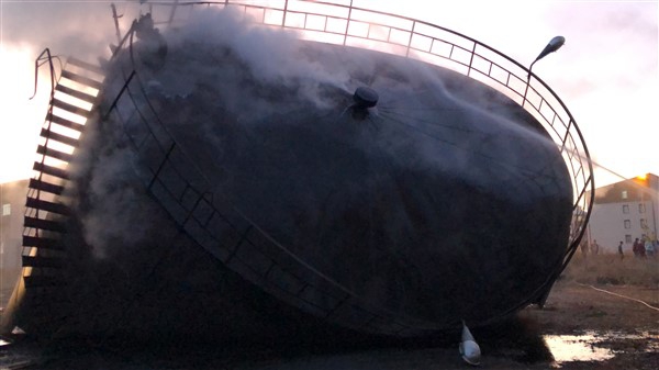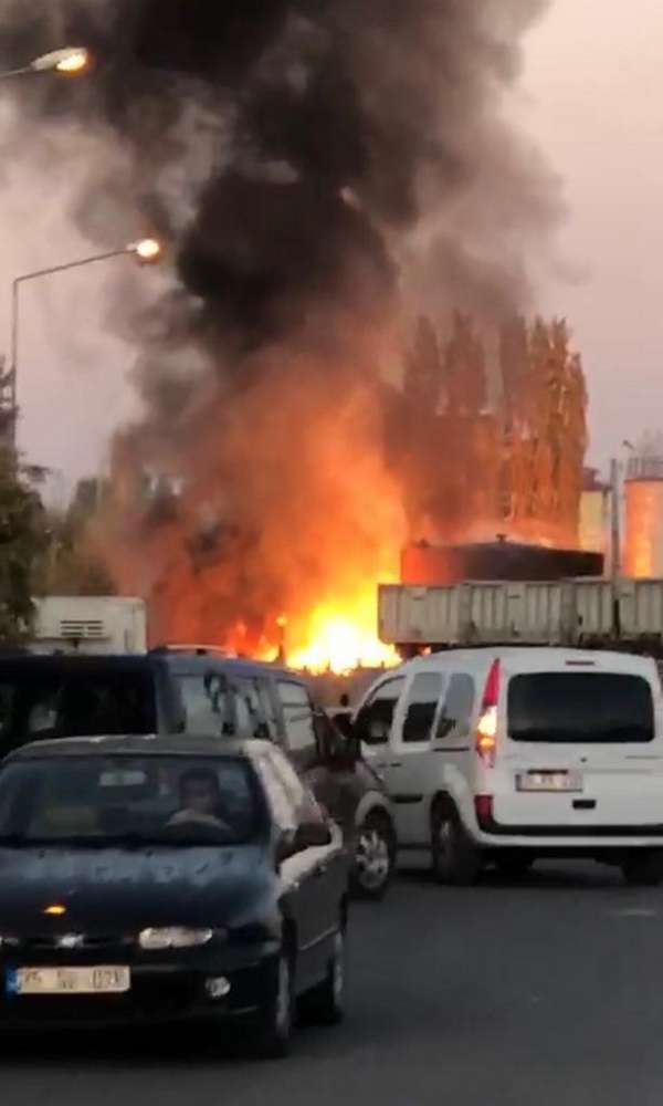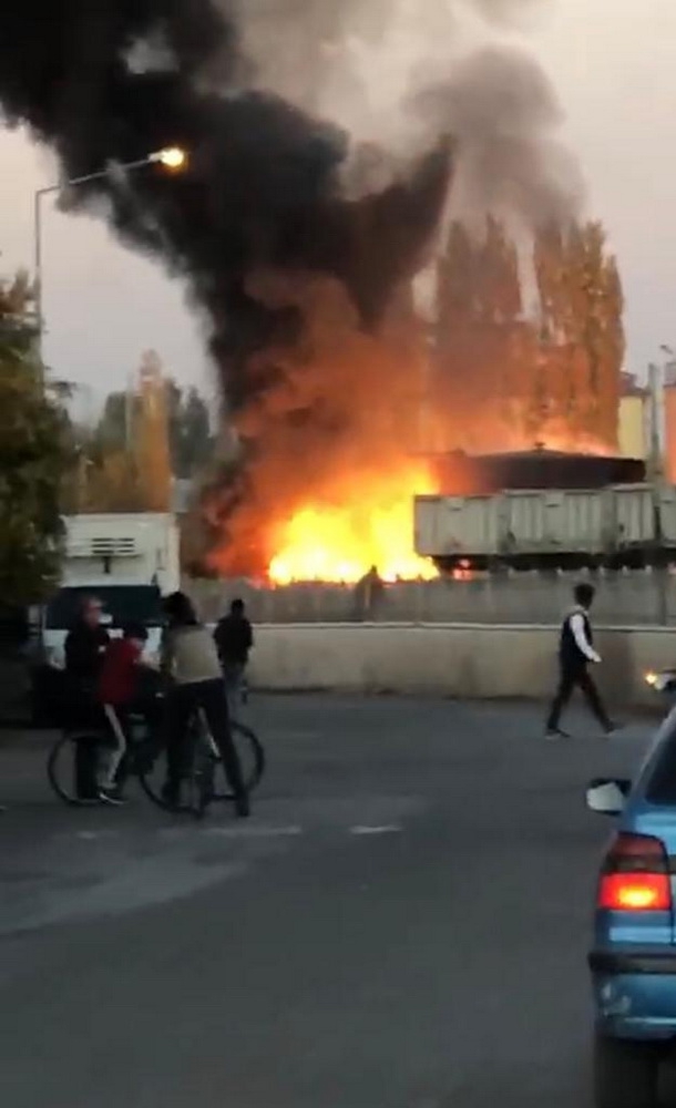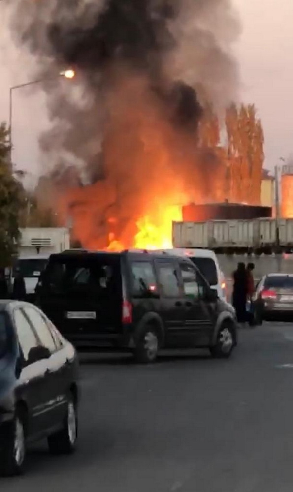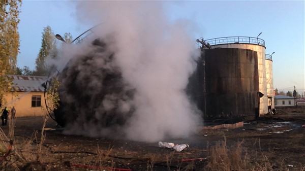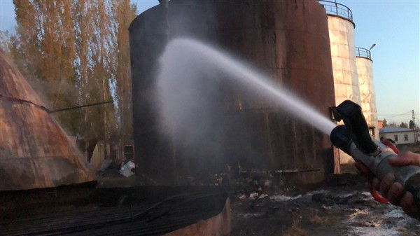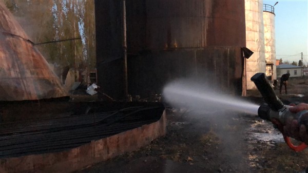 Kars’ta Asfalt deposundaki yangın paniğe yol açtı