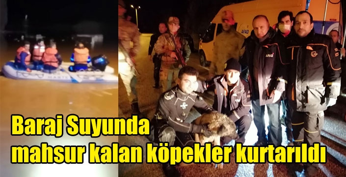 Kars'ın Sarıkamış İlçesi’nde su tutmaya başlayan Karakurt Barajı sularında mahsur kalan köpekler ekiplerin gayretli çalışmaları sonucu kurtarıldı.