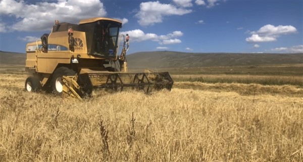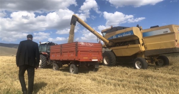 Başkan Ertaş, “Bu bölge soğuk olduğu için buğday çok yetiştirilmiyor. Burada arpa ve yulaf yetiştiriciliği yapılıyor. Biçerdöverimiz de arpa biçmektedir. Bu yıl ki mahsullerimiz tabi ki bölge bölge değişiyor. Alçak kesimlerdeki hasat yapılan yerler ile yüksek kesimdeki yerler birbirlerinden çok farklı. Alçak daha Haziran ayındaki yağışsız geçen bir aylık sürecin ardından bir verim kaybı hem danede hem de sapta ve samanda kayıp görüldü. Şuan yüksek kesimlerde gördüğümüz kadarıyla hem sap güzel hem dane güzel. Allah nazarlardan saklasın. İnşallah çiftçimiz bu sene olduğu gibi 2021 yılında da iyi bir verim elde eder.” dedi.