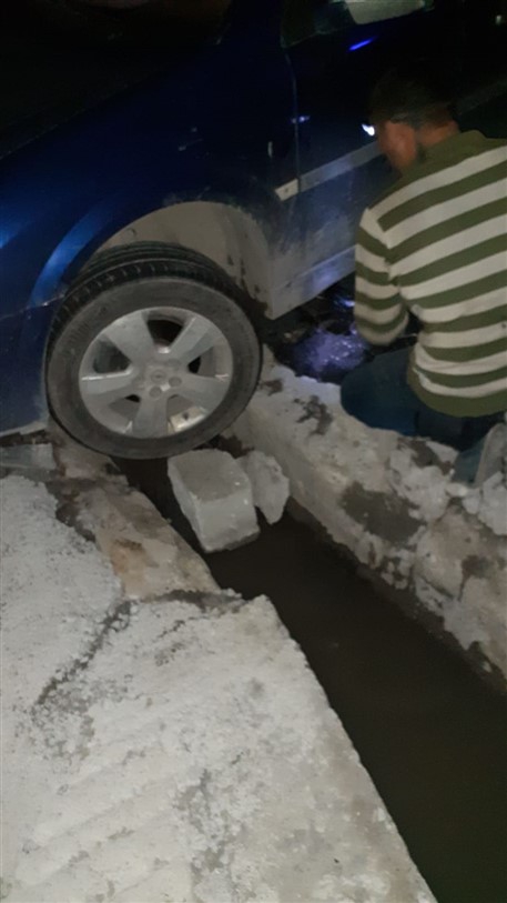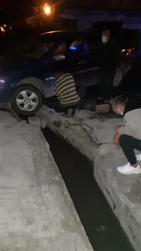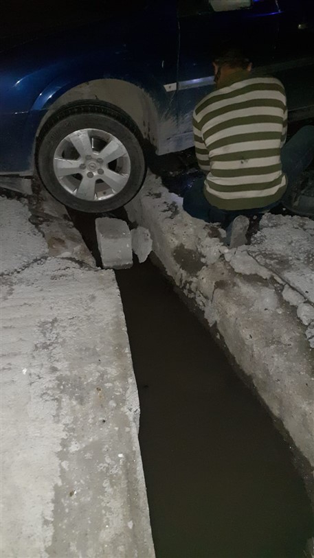 Polis Evi’nin ara sokağı olarak kullanılan yolda üzeri kapatılmayan su kanalı az kalsın bir arabaya büyük zarar veriyordu. Sürücünün karanlıkta fark edemediği su kanalına sıkışan aracın ön lastikleri çevre sakinlerinin de yardımıyla yaklaşık 30 dakika süren bir çalışma sonucu güçlükle çıkarılabildi.