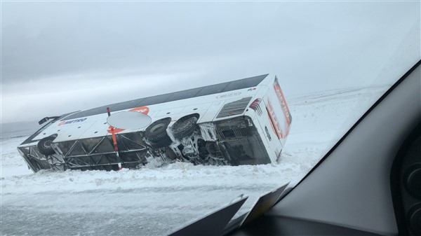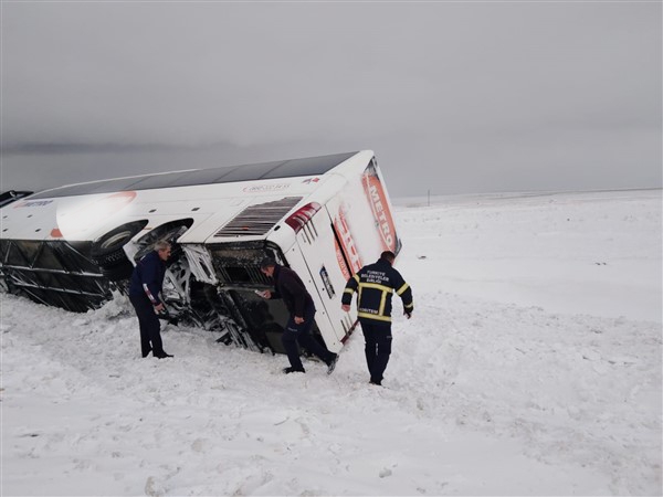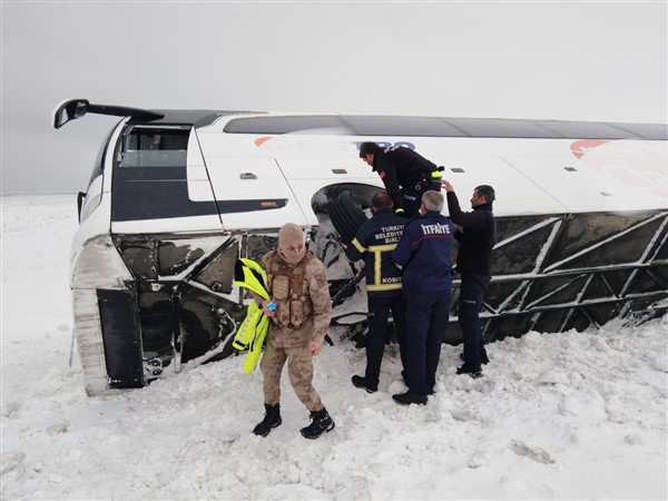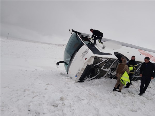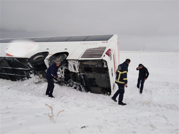 28 yolcusuyla Kars’a doğru gelen otobüs Tekneli köyü mevkiinde yolun buzlu olması nedeniyle kayarak yan yattı. Olay yerine itfaiye, polis ve jandarma ekipleri giderek yaptıkları incelemede ölen yada yaralananın olmadığını öğrendi.
