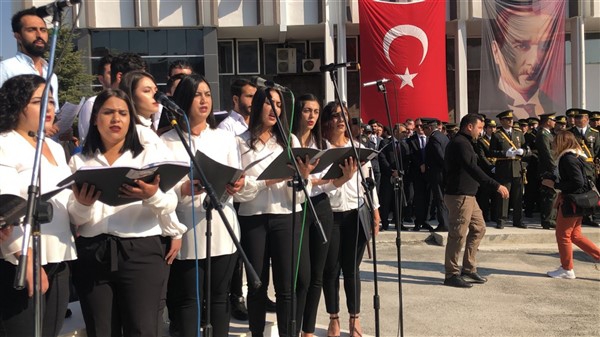 Aziz milletimizin azim ve kararlılığında Gazi Mustafa Kemal önderliğinde kurulan, milletçe yeniden dirilişimizin simgesi Cumhuriyetimizin kuruluşunun 96.yıldönümü düzenlenen törenle kutlandı.