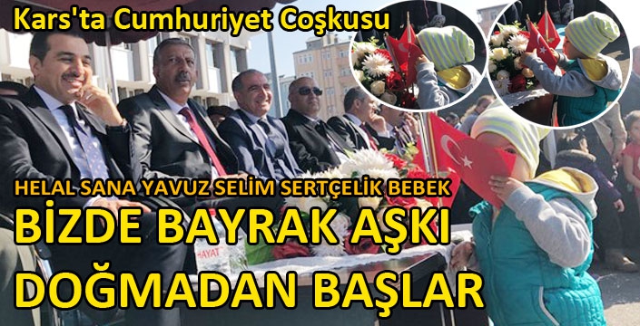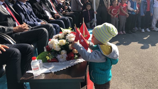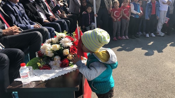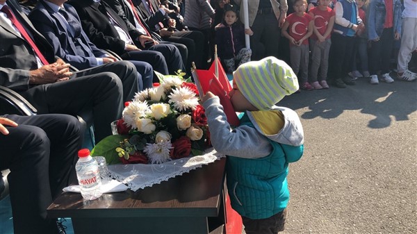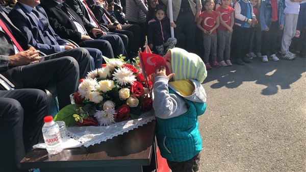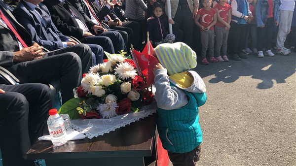 Yaklaşık 3 saat süren törenlerde bir çocuğun protokol masasındaki Türk bayrağını sevip öpmesi güne damgasını vurdu. 3.5 yaşındaki Yavuz Selim Sertçelik bayrağı öperken Vali Türker Öksüz de gururla çocuğun bayrak sevgisini izledi. Tüm protokol hayranlıkla çocuğu izlerken çocuk ise doğal haliyle istifini bozmadan uzun süre bayrağı öpüp kokladı.