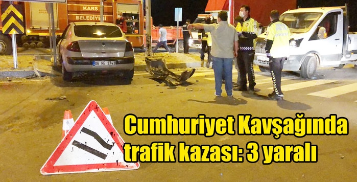 Kars Erzurum karayolu Cumhuriyet kavşağında otomobil ile kamyonetin çarpışması sonucu meydana gelen trafik kazasında 3 kişi yaralandı.