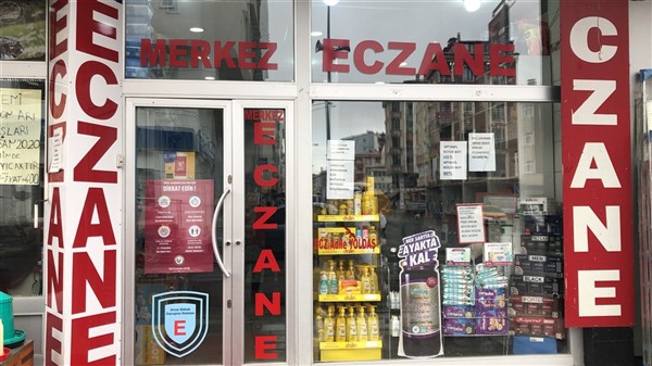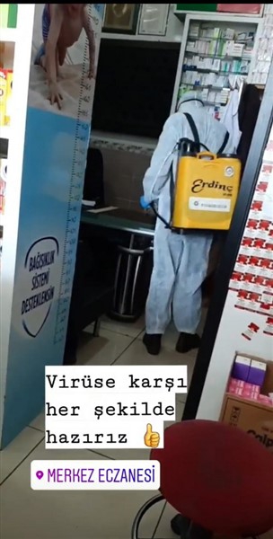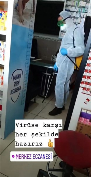 Merkez Eczanesi’nde aynı zamanda da belli aralıklarla dezenfekte çalışması yapılıyor.