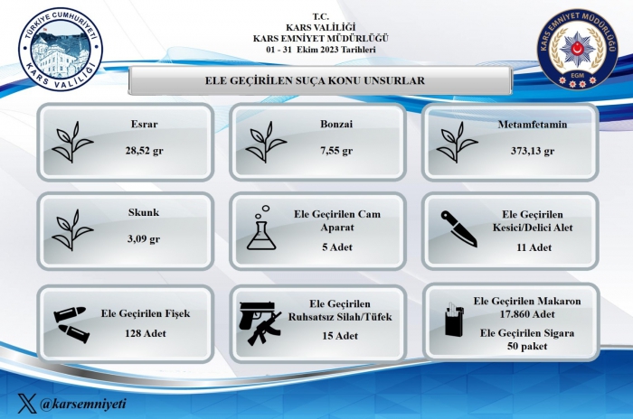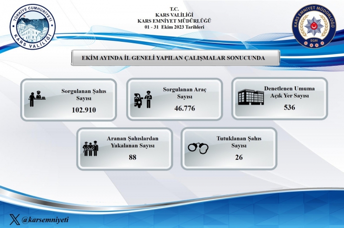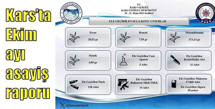 Kars’ta Ekim ayı asayiş raporu
