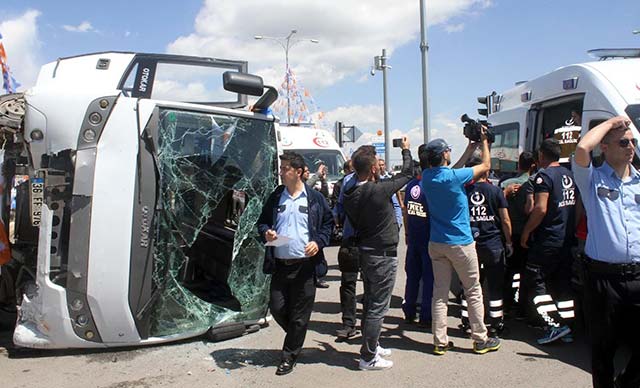Kars'ta, Başbakan Binali Yıldırım'ın güvenliği için görevli polislerin ekip otosuna çarpan, askerlerin taşındığı midibüs devrildi. Kazada, 33 asker ile 2 polis yaralandı.