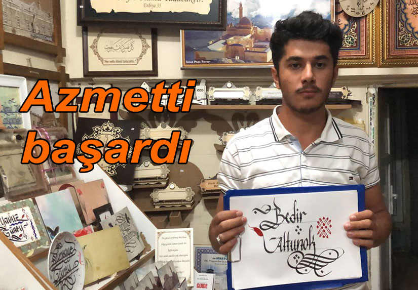 Kars’ta 18 yaşındaki Muhammed İkbal Gül, hat sanatına olan ilgisini mesleğe dönüştürmek ve sanatını icra edebilmek için gece-gündüz çalışıyor.