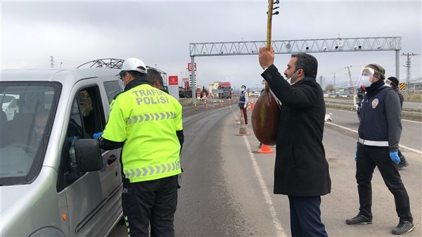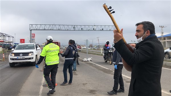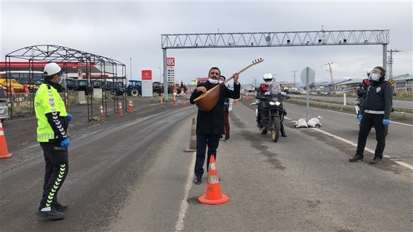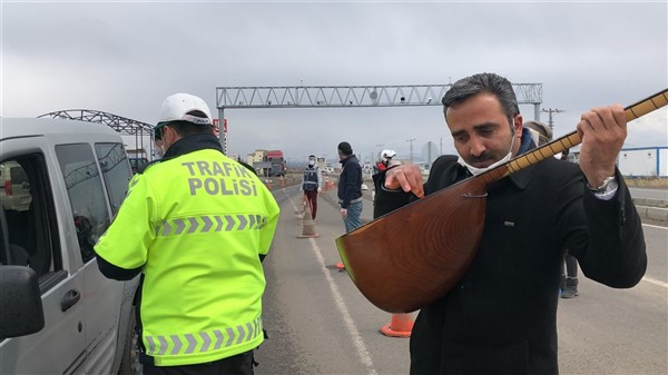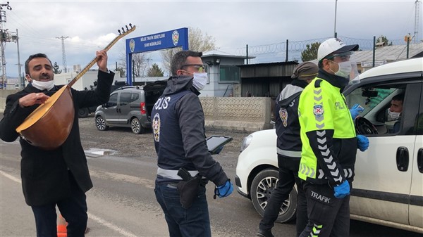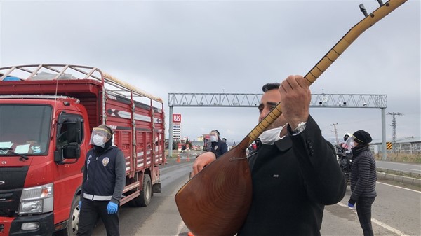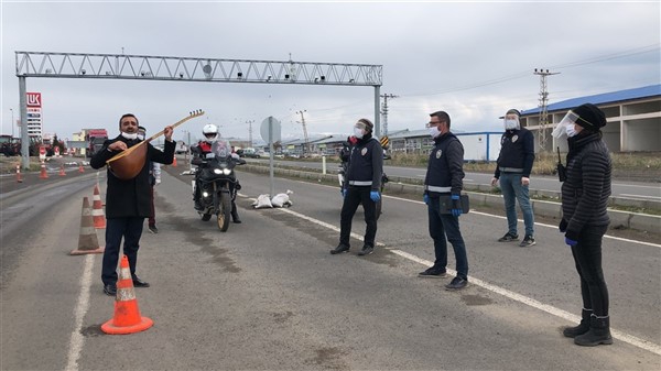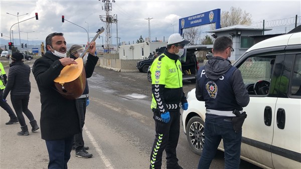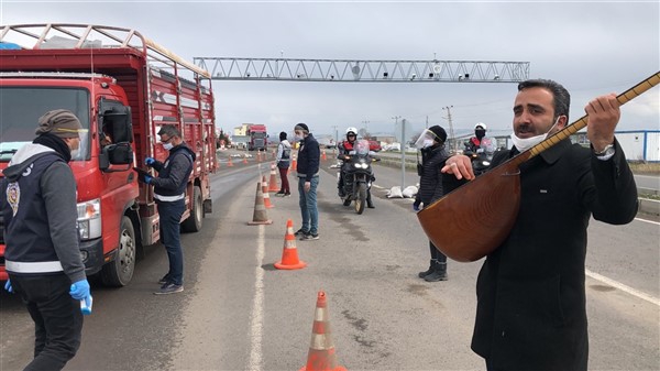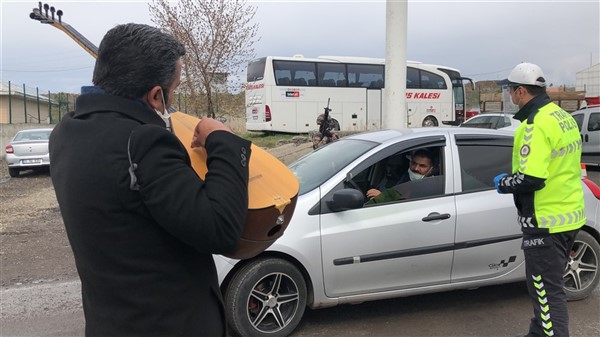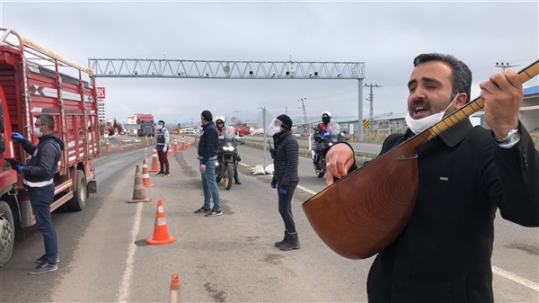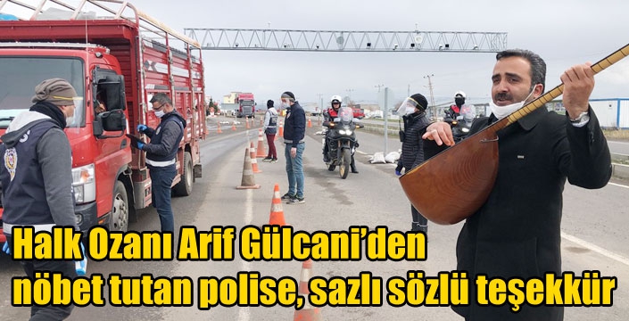 Kent merkezinin üç giriş noktasında 24 saat aralıksız nöbet tutan polis, kente girişte durdurdukları araç sürücülerin ehliyet, ruhsat ve kimlik kontrolünü yaparken, sağlık ekipleri de hem sürücü hem de yolcular üzerinde ateş ölçer cihazıyla sağlık taraması yapıyor. Gün boyu yoğun bir şekilde görev yapan güvenlik kuvveleri ve sağlık çalışanlarını ziyaret ederek onlara teşekkür eden Halk Ozanı Arif Gülcani, sazının teline vurup onlar için birbirinden güzel türküler söyledi. Görevliler, Ozan Gülcani sayesinde kontrollerini bir süre alışılmışın dışında sürdürdü. Ekipler sazı ve sözüyle görevlerine renk katan Gülcani'yi alkışlayarak teşekkür etti.