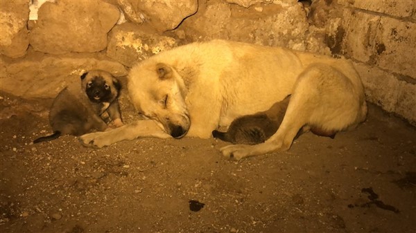20 YETİM YAVRUYA ANNELİK YAPAN KÖPEK ÖZEL BESLENİYOR