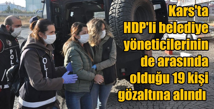Kars'ta PKK/KCK'ya yönelik operasyonda, HDP'li belediye başkan yardımcıları ile HDP il ve bazı ilçe başkanlarının da arasında bulunduğu 19 kişi gözaltına alındı.