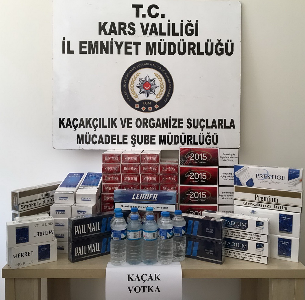 Kars Emniyet Müdürlüğü Kaçakçılık ve Organize Suçlarla Mücadele Şube Müdürlüğü görevlileri tarafından İl genelinde Kaçakçılık faaliyetlerinin önlenmesi, suç faillerinin tespiti ve yakalanmalarına yönelik yürütülen çalışmalarda 5 işyerinde kaçak sigara ve içki ele geçirildi.