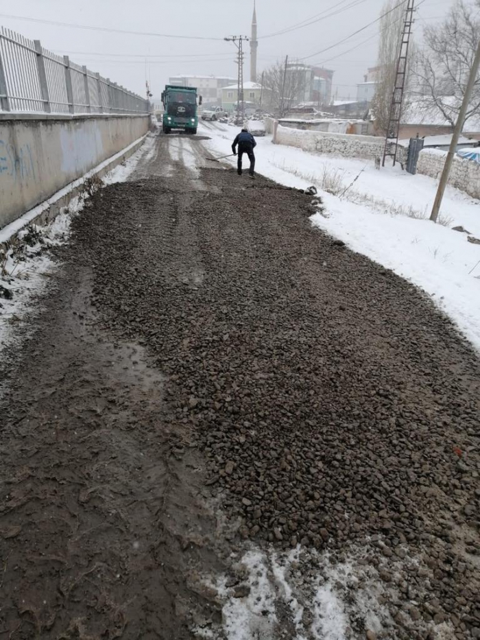 Zorlu kış şartlarının yaşandığı kentte Kars Belediyesi Fen İşleri Müdürlüğü Ekipleri vatandaşların mağdur olmaması için Alpaslan Mahallesi, İsmail Hakkı Alaca Bulvarında ve Karadağ Mahallesi Burcu Sokakta stabilize yol çalışmalarını tamamladı