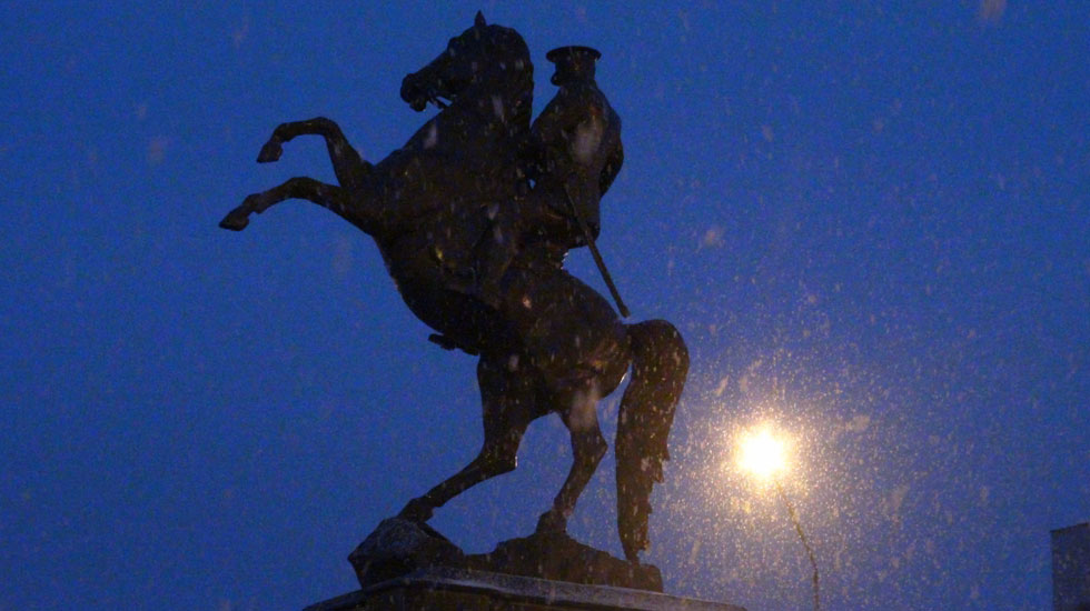 Kars’ta akşam saatlerinde aniden bastıran ve dakikalar içerisinde kenti yeniden beyaza bürüyen kar yağışı vatandaşları sevindirdi. İzmir'den 28 kişilik gurup halinde Kars'a gelen Dokuz Eylül Dağcılık grubu kar yağışı altında tarihi mekanları gezerek, fotoğraflarla Kars’ın tadını çıkardılar.