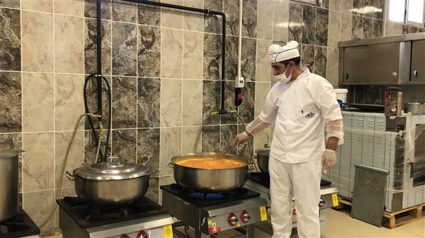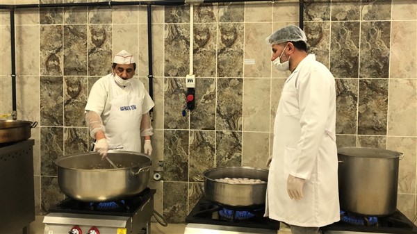 Yurdun alt katındaki mutfak bölümünde usta aşçıların hünerli elleriyle leziz yemekler hazırlanıyor. Mübarek ramazan ayında olmamız nedeniyle de misafirler için özel iftar ve sahur mönüleri hazırlanıyor. Sahurda kahvaltılıkları, iftarda da leziz yemekleri hazırlandıktan sonra odaların kapılarındaki masalara özel kıyafetli görevliler tarafından bırakılıyor. Sosyal mesafe ve temasa büyük bir özen gösteriliyor. Misafirler yemek saatlerinde kapı önlerindeki yemekleri alarak özel odalarında afiyetle yiyorlar.