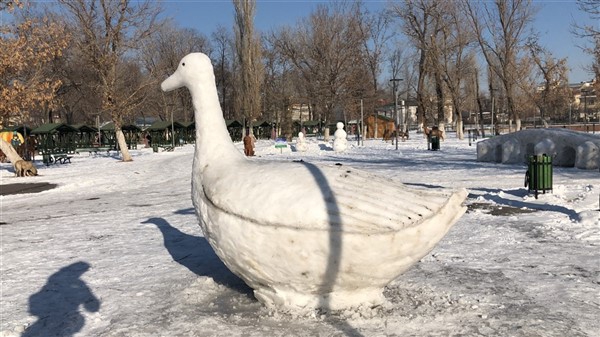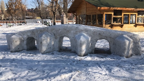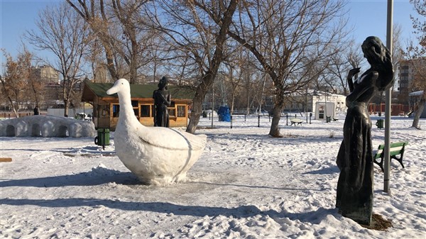 Kars’ın köklü geçmişine sahip olan Millet Bahçesi bu kış mevsiminde kardan heykellerle dolacak. Kardan Kaz, Taş Köprü ve kardan adamların yapıldığı alandaki Anfi Tiyatro bölümüne de iki adet Eskimo Evi yapıldı. Tüm bunlar Çoban Heykeltraş Metin Doğrukartal ve ekibi tarafından günler süren çalışmalar sonrasında yapılabildi.