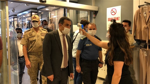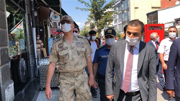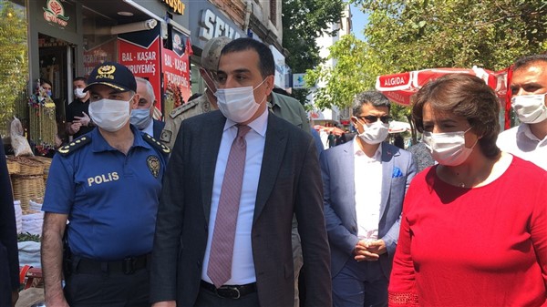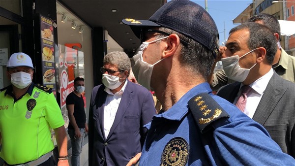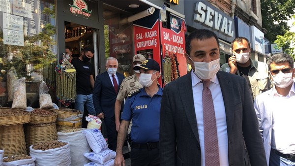 Vali Öksüz, 130 ekip ve 500 personelin bugün denetimlere katıldığını belirterek, “Bugün koronavirüsle mücadele kapsamında genel denetimlerimizi yapmaya devam ediyoruz. Bütün il ve ilçelerimizde bu denetimler yapılmaya devam ediyor. Burada da benimle birlikte İl Emniyet Müdürümüz, Jandarma Komutanımız, Ticaret Müdürümüz Mahalle Muhtarımız, Esnaf Odaları Başkanımız hepimiz bugün sahadayız. 130 ekip ve toplam 500 kişi bugün tüm il ve ilçelerimizde bu denetime katılıyor. Bu denetimlerin amacını hepiniz biliyorsunuz, ben bir kez daha ifade edeyim; koronavirüsle mücadelemizde toplumumuzun sağlığını korumak istiyoruz, tek amacımız bu. Onun için hepimize sorumluluk üstleneceği bir dönemdeyiz, vaka sayılarını durmamız lazım. Bunun içinde denetimlerine etkili, sürekli ve kalıcı olması lazım. Bütün kamu görevlilerimiz, sivil toplum örgütlerimiz, bütün vatandaşlarımız, hepimiz bu ortak sorumluluğu paylaşmalıyız. Bu sorumluluğu ne ölçüde yerine getirirsek bulaşma riskini o ölçüde geride bırakmış oluruz, bu sorunu çözmüş oluruz.” ifadesini kullandı.